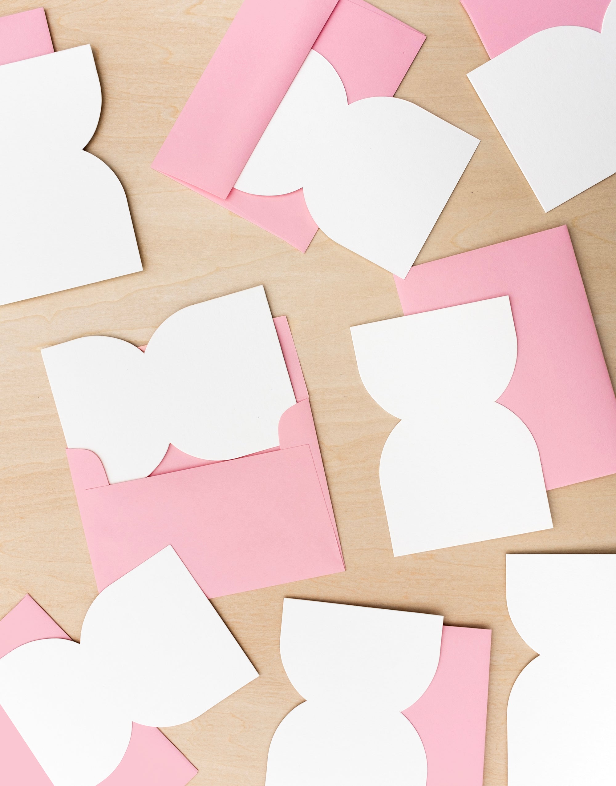 Shape notes are just what they sound like - notecards we custom die cut into our very own shapes! This set of 8 flat vessel-shaped cards snuggle neatly into pastel pink envelopes. Perfect to have on hand for your random and delightful hand written notes, suitable for any occasion.