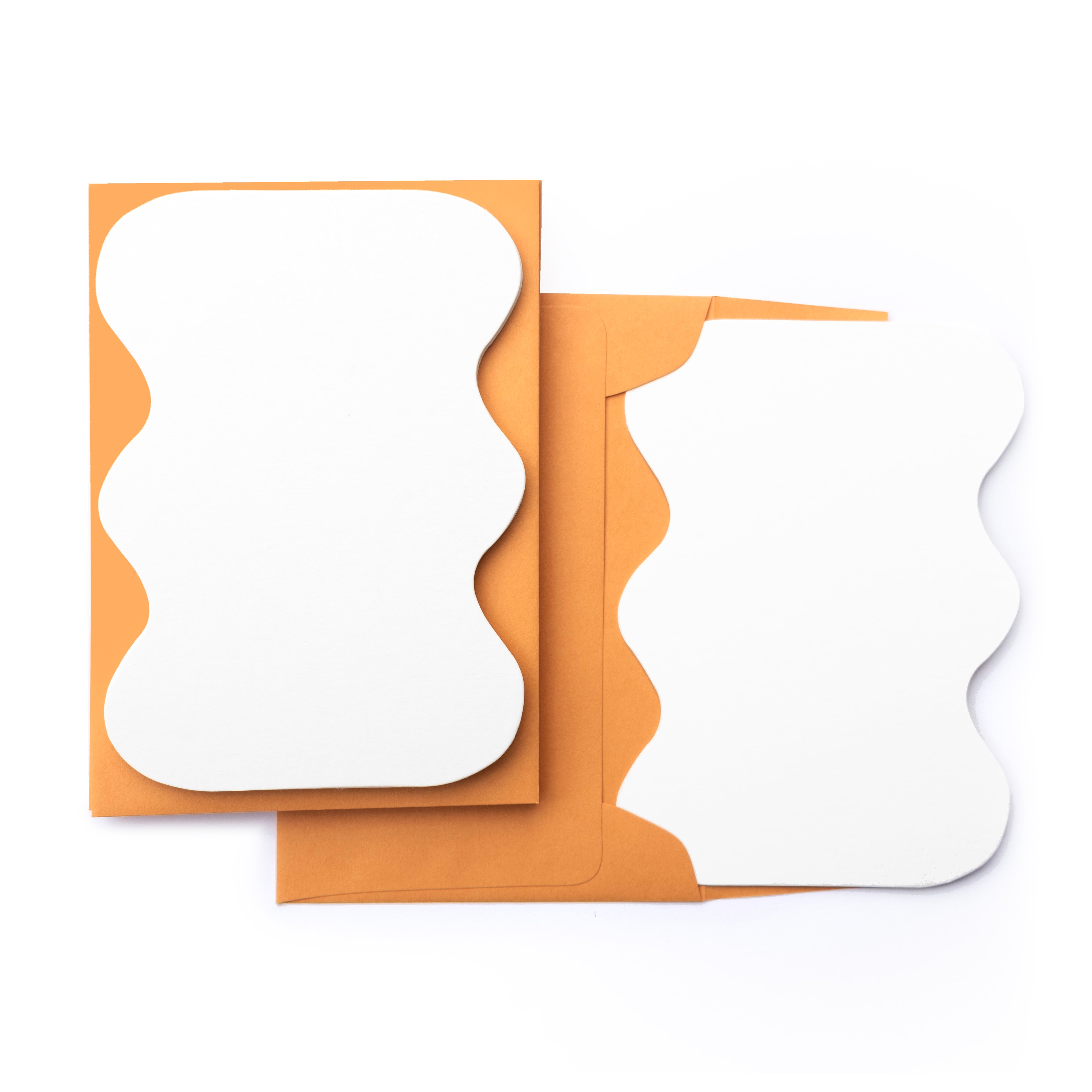 Shape notes are just what they sound like - notecards we custom die cut into our very own shapes! This set of 8 flat wavy-shaped cards snuggle neatly into poppy orange envelopes. Perfect to have on hand for your random and delightful hand written notes, suitable for any occasion.