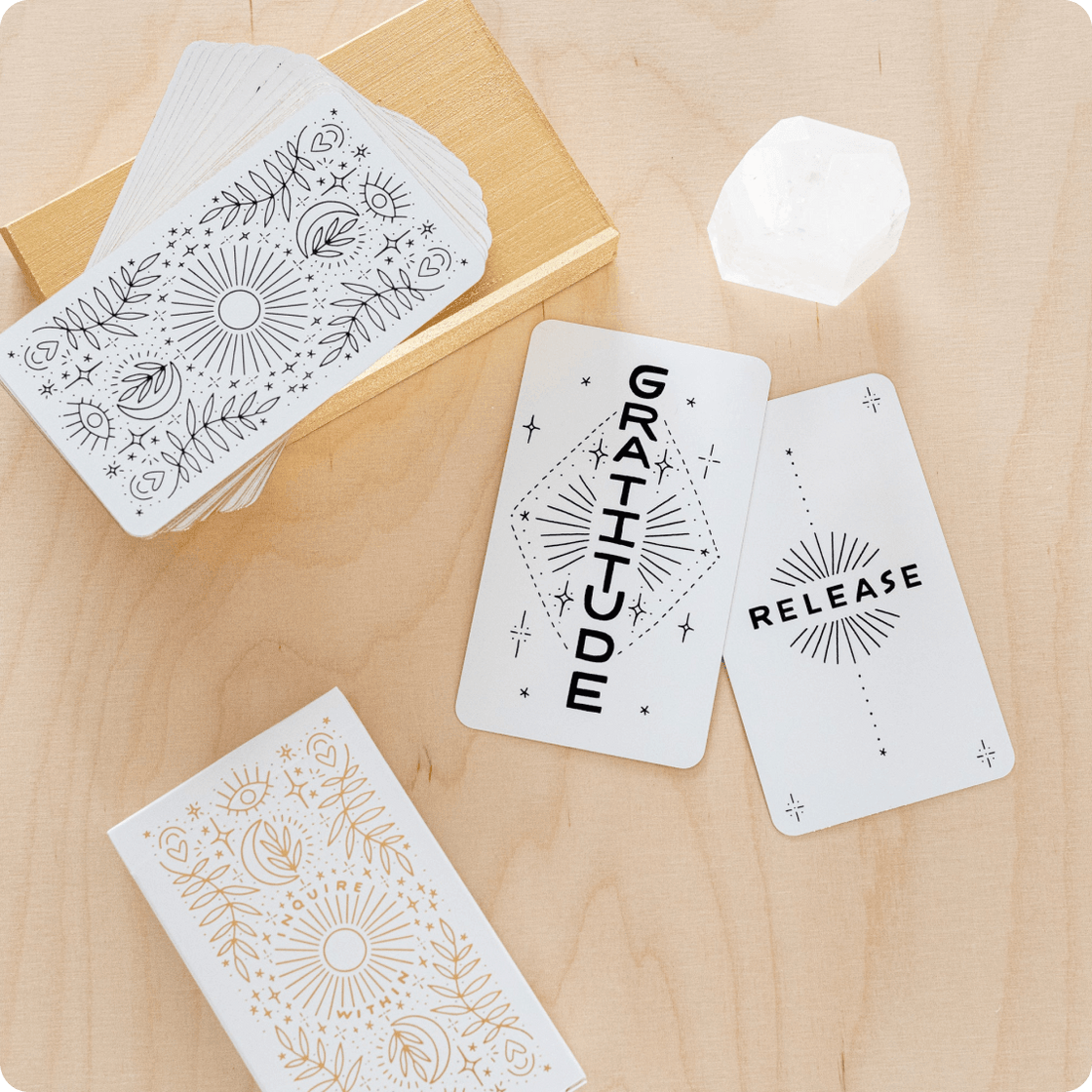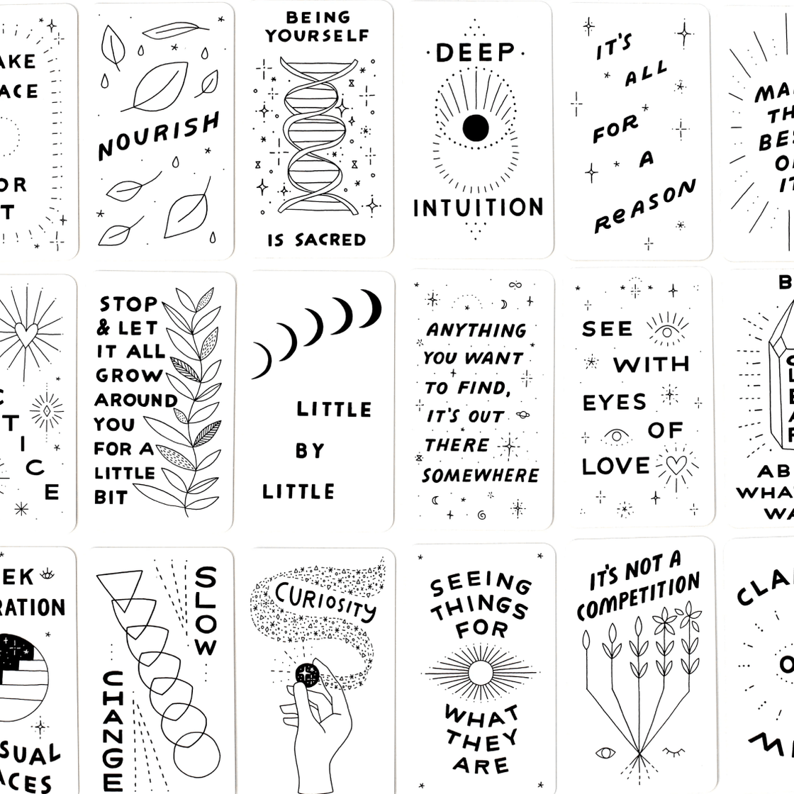 + Explore: flip through the deck and find a card with a message that speaks to you at the moment. Put it up in your space to remind you.